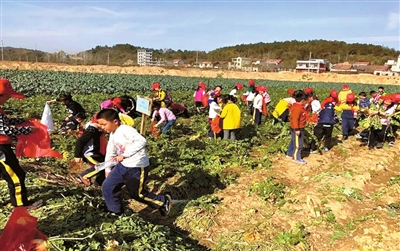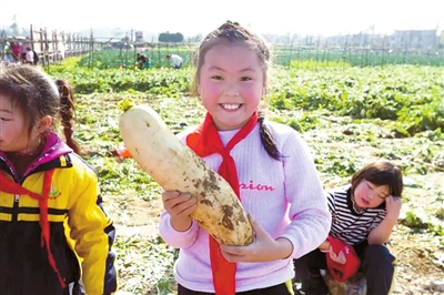 三年级学生开展了为期一天的研学活动。第一站来到了航天科技馆,孩子们一个个有序的来到了星球称重器上,跃跃欲试。体验完了有趣的“太空生活”后,孩子们恋恋不舍地离开了科技馆,来到了萝卜之乡。只听他们在赞叹:“看我拔的萝卜真大呀!”孩子们个个欢心鼓舞,喜悦之情溢于言表。