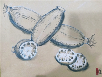 303班 叶梓涵 《写生莲藕》 指导教师 高梦云