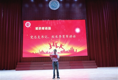 校长李育军在毕业典礼上作了《青春逐梦正当时 砥砺奋进向未来》致辞:希望同学们“励志勤学,强身报国”;仰望星空,脚踏实地;既要“成就小我”,也要“实现大我”。