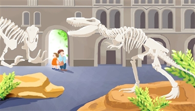刚走进博物馆的大门,就我看到了一副巨大的恐龙骨架,它好高呀!我让爸爸抱着我,可还是摸不到它的头呢。朋友们,你能想象到它到底有多大吗?在它的右边,我看到了一个大电视,我可以通过它控制里面的恐龙,这也太好玩吧!咦?那是什么?原来是卖纪念品的的地方啊,我被柜子里各种各样的商品吸引住了,有好玩的恐龙模型,有印着恐龙图案的拼图,还有金色和银色的纪念币。