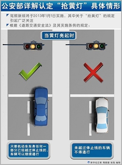 针对一些网友提出的黄灯亮时紧急制动造成的车辆惯性前行等问题,这位负责人表示,黄灯亮时,只要机动车车身任何一部分已越过停止线的,车辆可继续通行,不认定为闯黄灯。已越过停止线的车辆可继续通行,未越过停止线的车辆要停止通行。在车辆正常行驶过程中,只要驾驶人注意力集中、与前车保持安全车距,行经交叉路口时减速慢行、谨慎驾驶,“抢黄灯”和追尾事故是可以避免的。对一些网友反映的交通信号设置问题,公安交管部门将认真听取意见,积极采纳、不断改进。