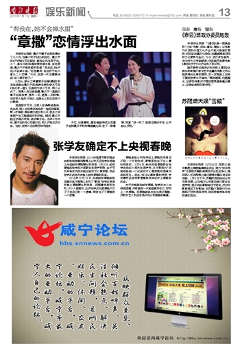 本报综合消息2013央视春节联欢晚会此前刚刚在腾讯微博上公布天王张学友将登上央视蛇年春晚舞台的消息,1月6日,蛇年春晚和张学友方面联合发表声明称,由于节目形势和内容未能达到双方心理预期,因此张学友决定放弃登上蛇年春晚的机会。