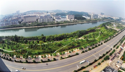 近年来,我市大力推进生态宜居城市建设。对中心城区10万平方米山体进行保护和美化,打造“城市绿心”;对九曲绕城的淦河进行治理和生态修复,沿河建设生态公园,打造“城市绿带”。