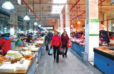 昨日,记者在温泉中心集贸市场看到,场外的摊贩已经搬进了市场内,水产区铺好了近30米的排水沟,以往该区地面污水堆积的现象已不复存在。以往在市场入口处占道的摊贩也有了正规摊位,摊位间距更加宽敞。“市场内各个售卖区一目了然,买菜更方便了。”市民刘大妈说,市场改造升级后,对各类摊位重新进行了分类,市民买菜不用四处穿梭了,而且市场亮化工程改造后,市场内宽敞明亮,也不用担心眼神不好使了。