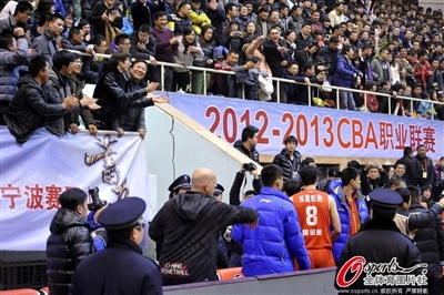 在裁判讨论了约1分钟后,并没有立刻把球改判,依旧判刘书楠的三分有效,这一行为引起了现场球迷和青岛队队员以及教练组的不满,在与技术台争执2分钟后出现了部分队员离场的情况。
