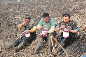 长时间跟淤泥、冰水打交道,他们中的大部分人,也往往因此落下风湿性关节炎等病根。天天泡在藕池里,他们只希望年前多赚点工钱,早点与家人团聚。元宵节后,他们再次踏上这片土地,7000亩的藕池中还将看到他们忙碌的身影。