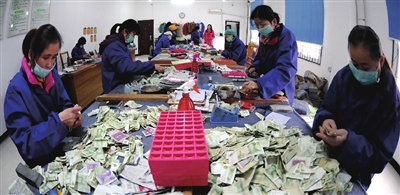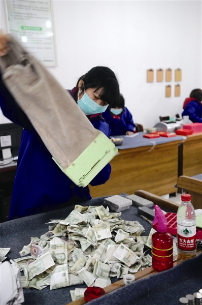 “用‘数钱数到手抽筋’形容她们的工作,一点不夸张。”送记者离开时,周经理这样评价她的同事们。