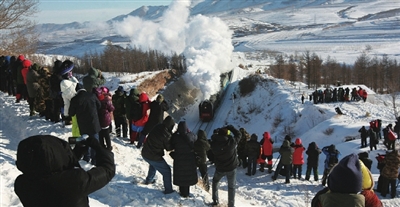 内蒙古集通铁路经棚至热水段,大坝梁隧道上方聚集了各地的火车迷,大家纷纷拍下难得的瞬间。随着蒸汽机车淡出历史舞台,火车迷兴起了一股蒸汽机车热潮,每年冬季,火车迷云集内蒙古克什克腾旗,用镜头追逐她舞动的身影。