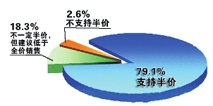 对于站票该不该半价的问题,一家门户网站组织的在线调查显示,有86.17%的网友支持半价,在其他多家媒体组织的在线调查中,支持半价的网友都是压倒性的多数。