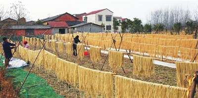 杨家岭村的村民采用传统工艺加工苕粉,已有上百年历史。生产出来的苕粉色泽纯正,入锅后不断裂,不浑汤,久煮不糊,味鲜柔软、滋润可口,深得消费者喜爱。