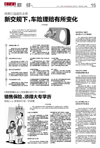 采访时有保险公司表示,虽然新交规的实施并不会影响原保险合同的效力,但在这些事故中,责任的认定或许会受新交规影响。