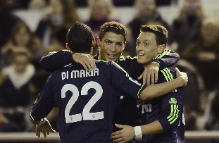 本报综合消息 皇家马德里队终于盼来了久违的完胜。北京时间1月21日4时,西班牙足球甲级联赛第20轮一场焦点战在梅斯塔尼亚球场展开争夺,C罗和迪马利亚双双打入两球,帮助球队客场以5:0大胜巴伦西亚队,这也暂时缓解了主帅穆里尼奥身上的压力。