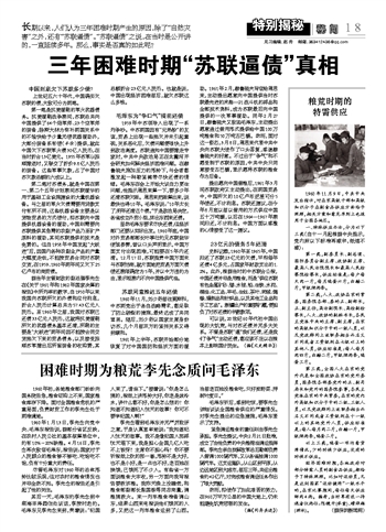 可以说,20世纪60年代初中国出现的大饥荒,与对苏还债并无多大关系。不管是苏联“逼”我们还债,还是我们“争气”主动还债,都应该不足以在根本上影响国计民生。 (据《文史精华》)
