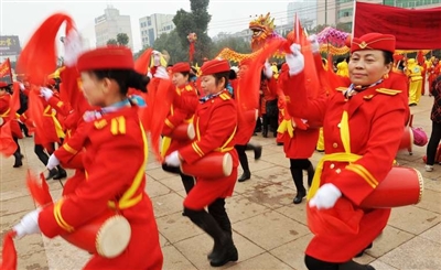 2月13日,农历正月初四,赤壁市人民广场彩旗飘飘、锣鼓锵锵,舞龙、盆鼓、剪纸、书法、采莲船等文化精品节目在这里进行大展演,拉开了赤壁市2013年新春文化赶集活动的序幕。