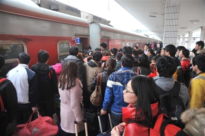 昨日,咸宁火车站人头攒动,外出务工、探亲返程客流开始涌现。赵忠志/摄