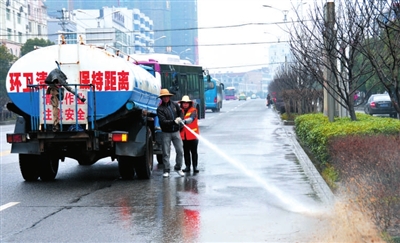 连日来春雨绵绵,城市道路蒙尘。昨日,记者在市区长安大道区区林业局路段看到,5名环卫工人和2台洒水车分为两组,分别在道路两侧进行路面清洁。据工人介绍,他们还将对市区各大主干街道进行除污清洗洁城工作,为城市“洗脸”。 (毛亚轩)