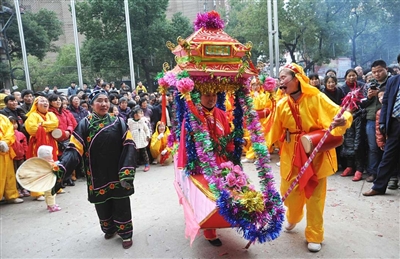 昨日,一支汇集舞龙、采莲船等各类民间杂耍表演形式的游艺队伍,从城区温泉路出发,以巡游表演的方式,热热闹闹拉开了闹元宵的序幕。游艺队伍到瑞融广场后,鞭炮齐鸣、锣鼓喧嚣,围观的市民把现场围了个水泄不通。
