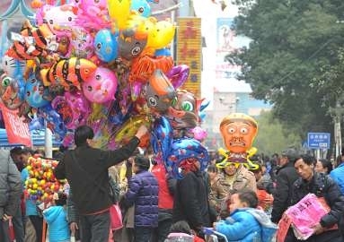 城区中百超市门前,猜灯谜活动热闹非凡,街道两旁销售小灯笼的小贩生意格外红火。为了应对车流骤增的压力,交警部门专门加派民警上街执勤,维持交通秩序。