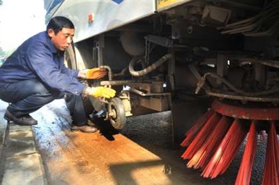老徐现在开的环卫清洗车是咸宁环卫系统最昂贵的,价值82万元。车贵倒不见得开着舒服,由于要将道路两侧清洗干净,驾驶环卫清洗车要用行车很少用的挂一档,加之车子底盘重,坐在驾驶室会感受到强烈的震动。