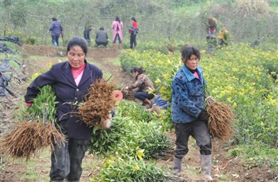 咸安区桂花镇桂花苗木销售进入旺季,田间处处是农户忙碌的身影。目前该镇桂花种植面积达3万亩以上,现在每天有百万株苗木从这里销往河南、安徽、江苏、广西等地。 赵忠志 陈志茹 吴剑/摄