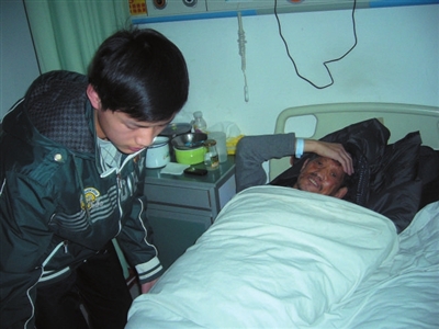 昨日下午16时许,在市中心医院同济咸宁医院住院部11楼肿瘤科二病区8号病房,记者见到了躺在病床上的余运港和在床边服侍父亲的余普,牵出一段感人至深的亲情故事……