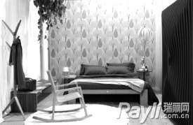 用树形图案的壁纸铺墙,打造一个充满自然味的床头背景墙。深浅不同的绿色系床品为自然感睡眠环境加分,绿色的波浪纹设计的衣柜,时尚前卫,和高挂的绿萝,黄色色的绿色摇椅,高高低低,层次丰富,整体卧室空间显得更加饱满。
