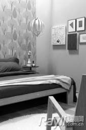 卧室的吊灯是竹木材质,透着质朴的自然味。墙面上的装饰画,绿色几何图案分外有趣,虽然简单,但色彩鲜亮,造型新鲜,这些细节上也能助力卧室的自然美。