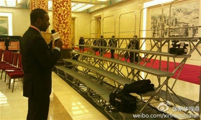 在全国政协十二届一次会议的记者会后,一位外国记者“自播自拍”,一人干起了两人的活儿。不知他工资是不是也拿双份的?
