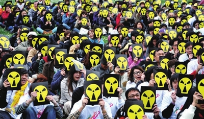 近日,台湾非核家园大联盟在台北举行“抢救核辐岛”快闪行动剧,反对核电建设。