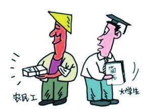 改革开放让广大农民离开土地进城打工,由于本来的农民身份,外来人员身份,加上进城打工一族队伍庞大,这让用工单位有了挑挑拣拣甚至廉价使用的可能。一些用工单位至今无险可保,更无劳动待遇可言,只有干巴巴的低廉工资,其实仍然在延续改革开放之初一切廉价用工的丑陋。那么,作为中国人中的大学生而且是硕士生知识分子一族,一上来就拿这种本来就受到不公正待遇的农民工说事,是不是有意无意中预设了一种对农民的歧视?任何拿农民工作工资待遇比照对象者,其实都没有要为农民工争取权益的意思,而只有为自己待遇鸣不平的动机。如果中国根本就没有农民工受不公正待遇之现象,你们还能拿什么来作垫背?