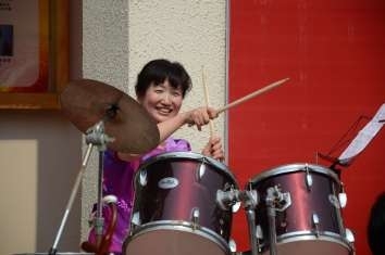 虽是阳春三月,当日却是骄阳当空。露天演出的音乐家们许多已经是年过六旬,他们满头大汗却一丝不苟,沉浸于每一个音符中,完成每一首曲目的演奏。