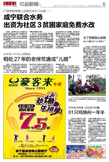咸宁联合水务出资为社区3贫困家庭免费水改