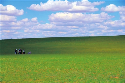 经过2个小时的行程,满眼的草地和远处星星点点的蒙古包映入我们的眼帘。我心里忍不住想豪呼一声:草原,我来了!