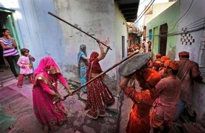 3月21日是印度北方邦巴尔萨纳的“棒打男人节”。这一天,巴尔萨纳的妇女可以用竹竿敲打来自南德冈的男人,报复他们离开巴尔萨纳时对自己的奚落。
