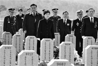 26日,“天安”舰事件3周年纪念活动在韩国各地举行,韩国总统朴槿惠当天出席了在大田国立显忠院举行的“天安舰勇士三周年悼念活动”。