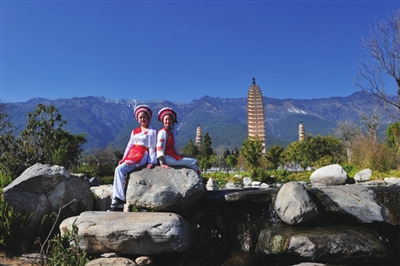 8日早晨6:30,我们提早起床,开始一天新的旅程。车往大理进发,天阴沉沉的,有点冷,导游解释:“春城一雨成秋冬,每天都可能穿得上四季的衣服”。到了大理,苍山洱海,天高云浓,花团锦簇,古街琳琅,吸引人的却是街边的小吃和水果。吃过耳块,勾起久违的熟悉味道;满街招摇的蛇果、雪莲果、人参果、樱桃令人目不暇接,让人口舌生津。