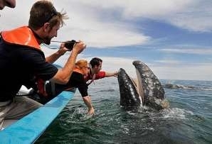 霍夫曼称,生活在这一海域的灰鲸非常友好,喜欢与人接触,总是会热情迎接游客们。他说,看到这么“有爱”的场景,所有人都会露出会心的笑容。