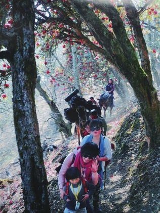 10日,我们的目的地是香格里拉。一路崇山峻岭,路的一边靠山,另一侧是千米的深渊,一位恐高的游客从车里往外看了一眼,吓得双眼紧闭。
