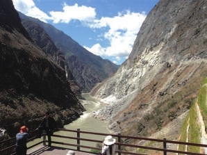途经金沙江第一湾后,我们直奔虎跳峡。头一次来到著名的虎跳峡,还是被眼前的景观深深地震撼:天上炽烈的太阳,耳边呼啸的凉风,两旁耸立的高山,中间湍急的河流。高山如刀削峭壁,垮塌的巨石触目惊心,河水从两峰夹缝中奔泄而下,被岩石撞击得粉碎,成了白花花的泡沫,就像汹涌着一江的啤酒花。