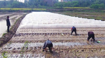 ◀今年2月份,官埠桥镇成立了早稻集中育秧工作领导小组。镇干部走村入户,帮农民制定生产规划,集中培训30余名育秧技术骨干。在农技站的指导下,组织早稻集中育秧示范点,免费供应稻种、固定专人指导育秧技术等优惠条件,力争早稻集中育秧成功实施。目前,该镇已掀起春耕备耕热潮。
