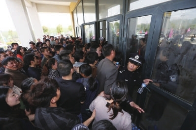近日,武汉市东湖高新区佛祖岭街湖口社区安置还建房的分房现场,由于人太多,防止踩踏事件发生,开发区公安部门派遣数十人的防暴队员和治安民警维持秩序。