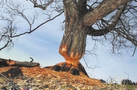 看上去这就像是进行到一半的伐木现场,而事实上,这是河狸啃食的结果。河狸又叫海狸,是一种大型的啮齿动物,尾巴扁平,大部分时间泡在水中。我们通常所说的河狸主要指美洲河狸,而分布在欧洲的河狸亚种已经因捕猎而几乎灭绝。