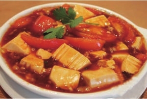 做法:先将番茄切成小块放入锅中和少量大蒜加油炒片刻,然后加水煮至沸腾,再放已切成小块的豆腐,加盖焖2-3分钟,最后加芝麻油和葱段即可。