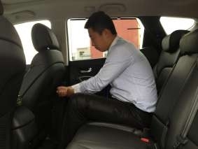 乘坐:全新胜达对车内乘员的关怀可谓是无微不至。大面积的全景天窗一直延伸至后排,真正做到了对天空的完全“霸占”。记者发现,后排乘客不仅享有一个独立温控的空调系统,还包括12V电源、座椅吹风(热、冷)、中央扶手储物以及后窗手动遮阳帘。另外,它们的座椅可以单独的前后移动,靠背角度也能够前后自由调节以寻找最舒适的坐姿。第二排中央地板几乎是平整的,这对不得已坐在后排中间的乘客来说是个福音。