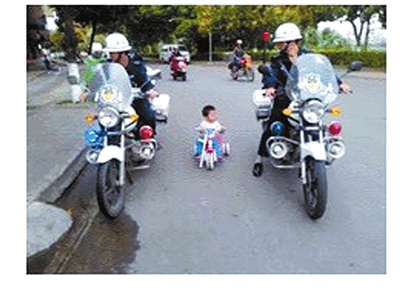 这几天,一张巡警警车开道护送迷路幼童回家的动态GIF图片在网络上被转发了约11万次。近日,广东省河源市公安局一值班民警在接受采访时称:“3月19日下午有市民报警,称一个小孩儿骑着玩具车在路上乱跑,当时路上车流量很大,小孩儿很危险。杨勇、叶彬等4名巡警赶到现场,准备将小孩儿送回家。”
