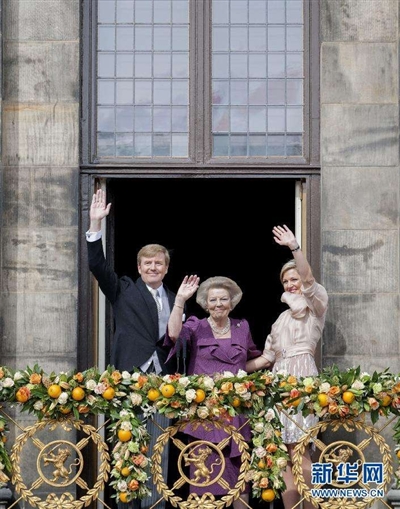 现年75岁的荷兰女王贝娅特丽克丝在即位整33年后,于4月30日举行退位大典,简短而隆重地宣布退位,将王位传给她46岁的长子威廉-亚历山大。新国王威廉·亚历山大在母亲宣布退位后,对她在“动人而传奇”的一生里所做的一切表示感谢。同时,他感谢民众给予皇室的“支持”。