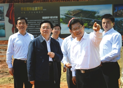 图为省长王国生在市领导任振鹤、丁小强陪同下,在我市调研项目建设。