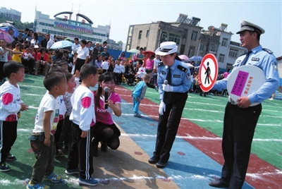 “小朋友们,过马路时要注意什么?”日前,市公安局交警支队二大队女子宣传队以幼儿园亲子会为契机,走进咸宁市红缨国际幼儿园,举办了一次道路交通安全课。活动当天,女警们就交通安全标志、如何辨认红绿灯、如何正确在斑马线上行走等知识作了重点讲解;女警们还将操场布置成一条马路,与小朋友们进行了现实道路交通演练。(张琰 陆映蓉)