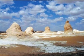 一些形状各异、大小不一的白色球状岩石在距离埃及西部的法拉法拉镇北边28英里的沙漠地形成,像是一簇簇蘑菇,又像是一群半融化的雪人屹立于此。它们外观的形成并不是前卫的石雕刻家的成果,而是风的自然杰作。当覆盖这片土地的海洋枯竭的时候,剩下的沉积层逐渐被打破,比较柔软的土层便瓦解了。随着时间的推移,强大的沙尘暴便塑造了如今这些奇特的球状岩石。