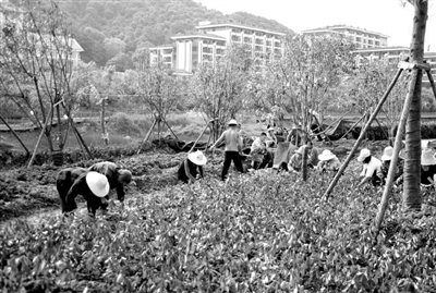 近日,记者在我市旅游新城南入口综合服务区一带看到,工人们正忙着“植绿”,一片片绿化带、景观树、鲜花带,让旅游新城南入口变得美丽起来。 赵忠志/摄
